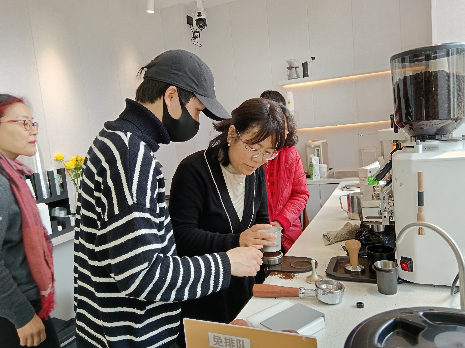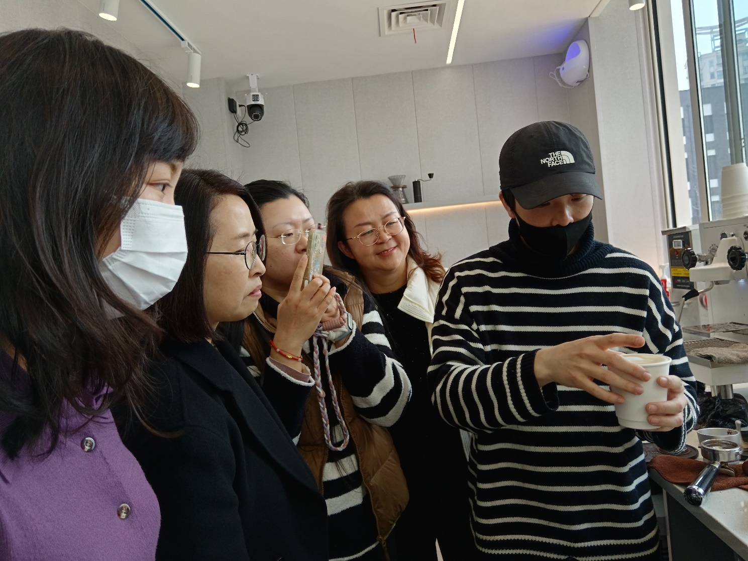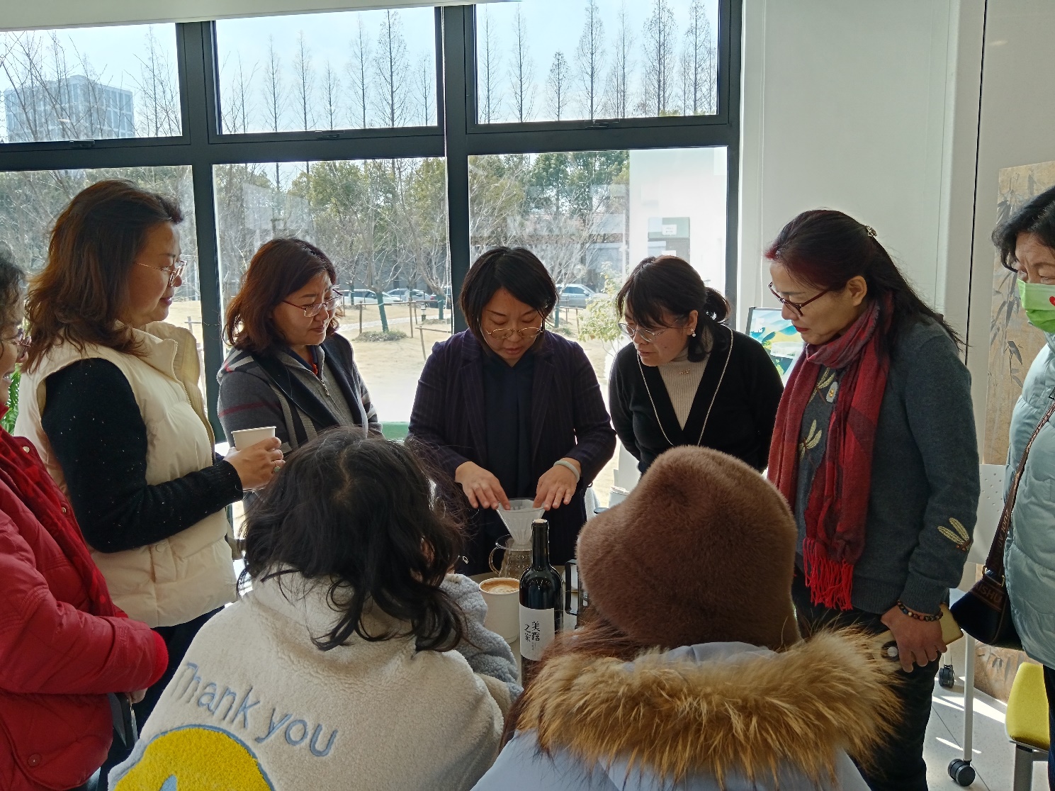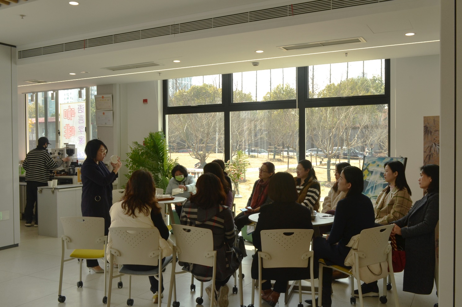 此次活动由学院工会策划并得到了学院的大力支持。学院工会主席刘亦春同Café Linguist一道就活动内容进行了详细安排,党委书记薛海霞到场同大家一起学习、联欢。大家学得认真,师傅教得仔细,每位参与的老师都全程体验了技艺与艺术相结合的咖啡制作,感受了创作的愉悦与工艺的奇妙,度过了一个收获满满妇女节。