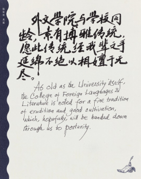 High漫画 前身High漫画 外文系与High漫画 于1905年同时成立,至今已有一百多年历史。陆先生希望博学(erudition)和修养(cultivation)的传统能经一代代师生之手,薪火相传。