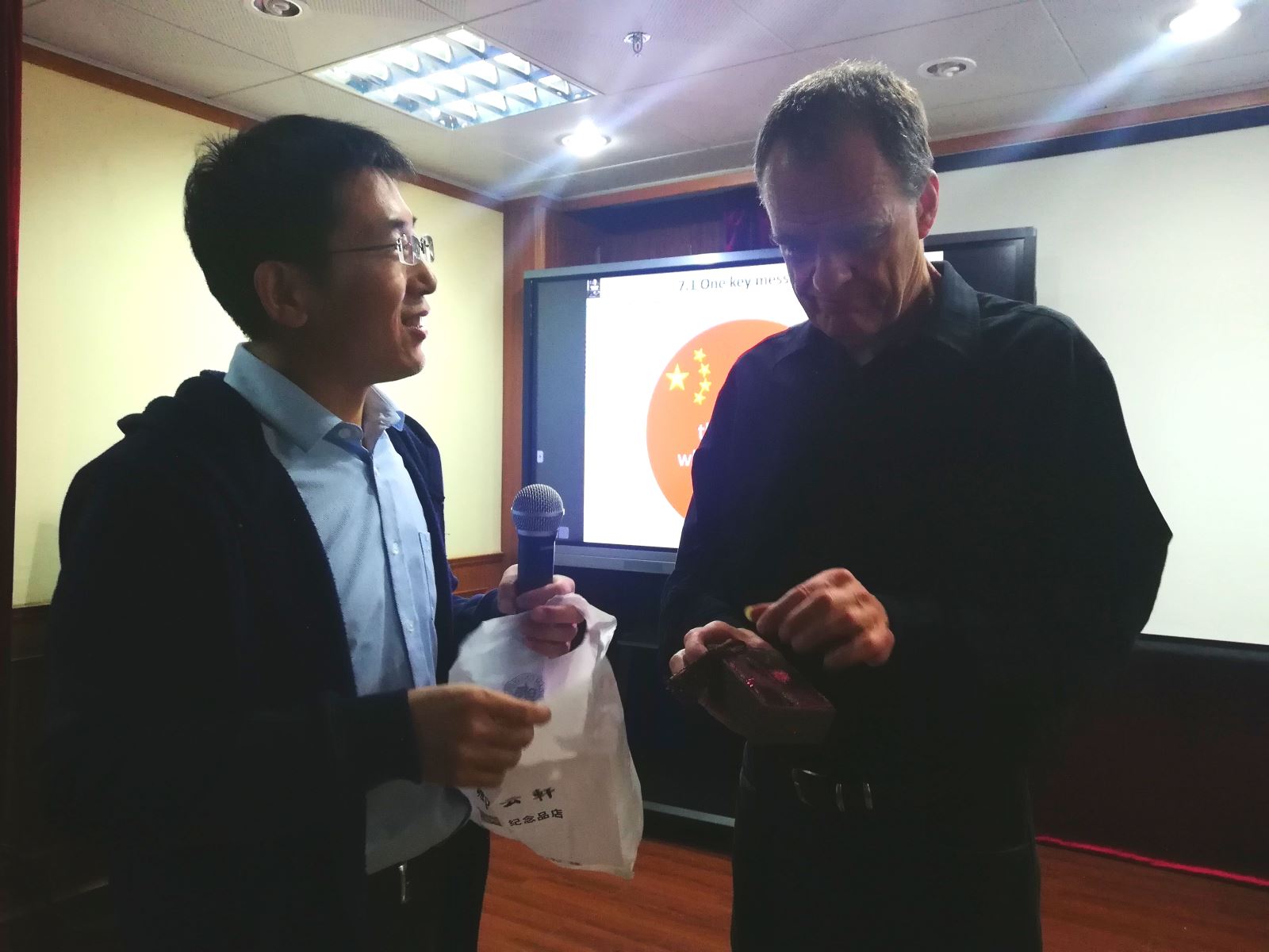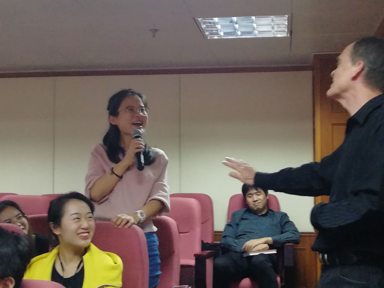 文科楼讲演。此次讲座分为上下两场,主题分别为“如何译介中国故事”,“如何译介习近平新时代中国特色社会主义思想”。讲座由陶友兰教授与王炎强博士主持。