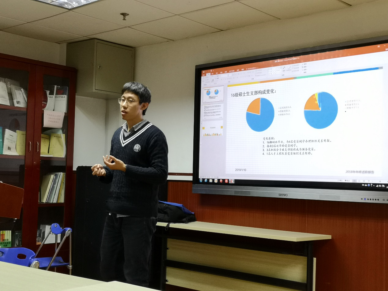 赵昕老师简要点评了各支部的工作,提出各学生党支部在新的一年要围绕“厚基础、高水平、有特色”开展支部建设,进一步夯实基础、加强凝聚力、增强活力。
