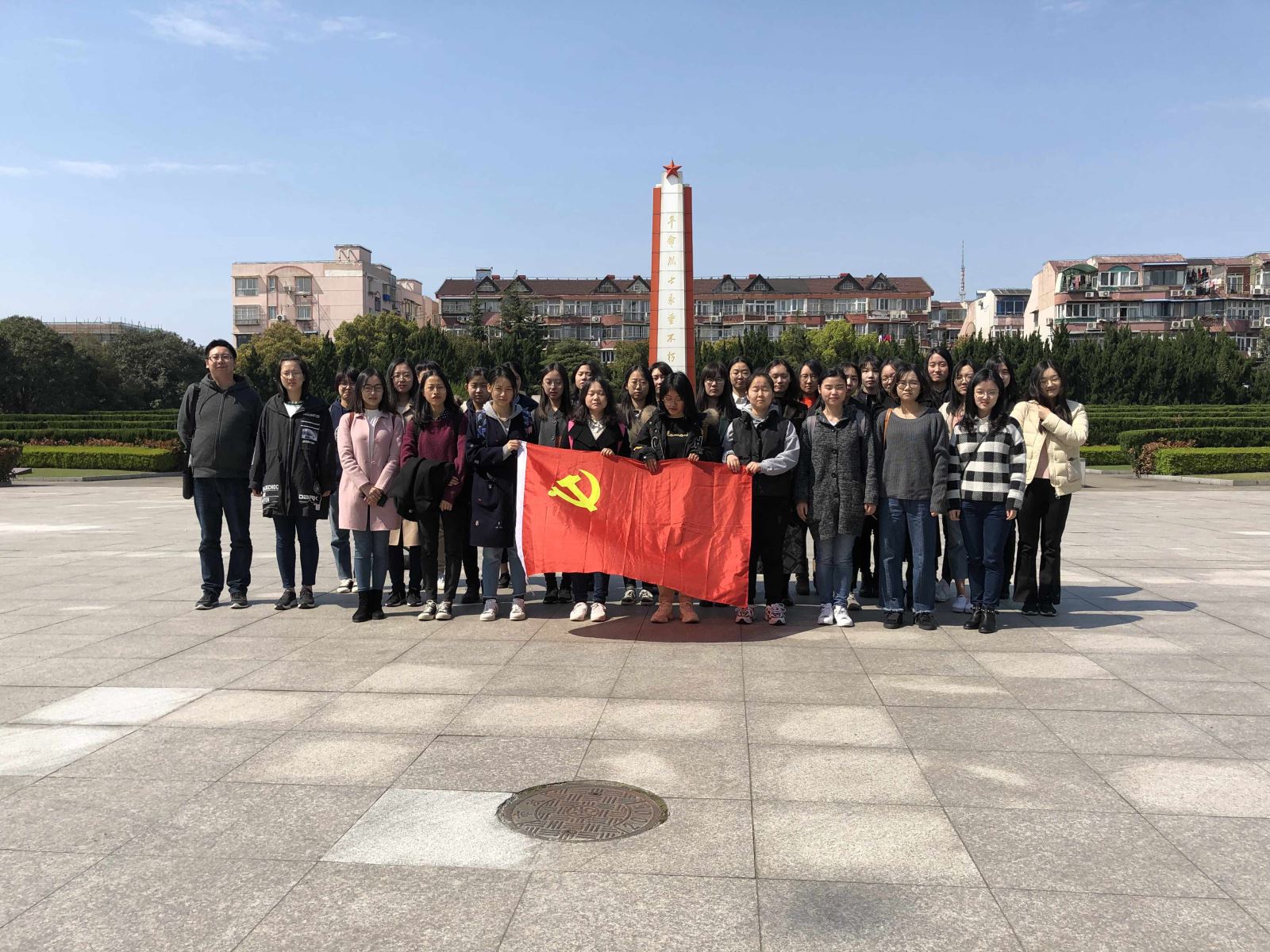 宝山是上海解放战役的主战场之一,人民解放军在这里前仆后继,浴血奋战,为上海解放做出了重大牺牲。在解放上海战役中牺牲的8000余名烈士中,有1886名长眠于宝山烈士陵园。在庄严、肃穆的气氛中,同学们怀着崇敬的心情向革命烈士敬献了鲜花,在革命烈士墓前鞠躬致哀,缅怀他们为解放上海人民立下的不朽功勋。党支部书记许永建、辅导员贾怡锐先后发言,并带领大家在烈士墓前庄严宣誓:“人民为先,祖国至上;诚实勇敢,自律自强;奋发有为,誓作栋梁;振兴中华,再创辉煌!”