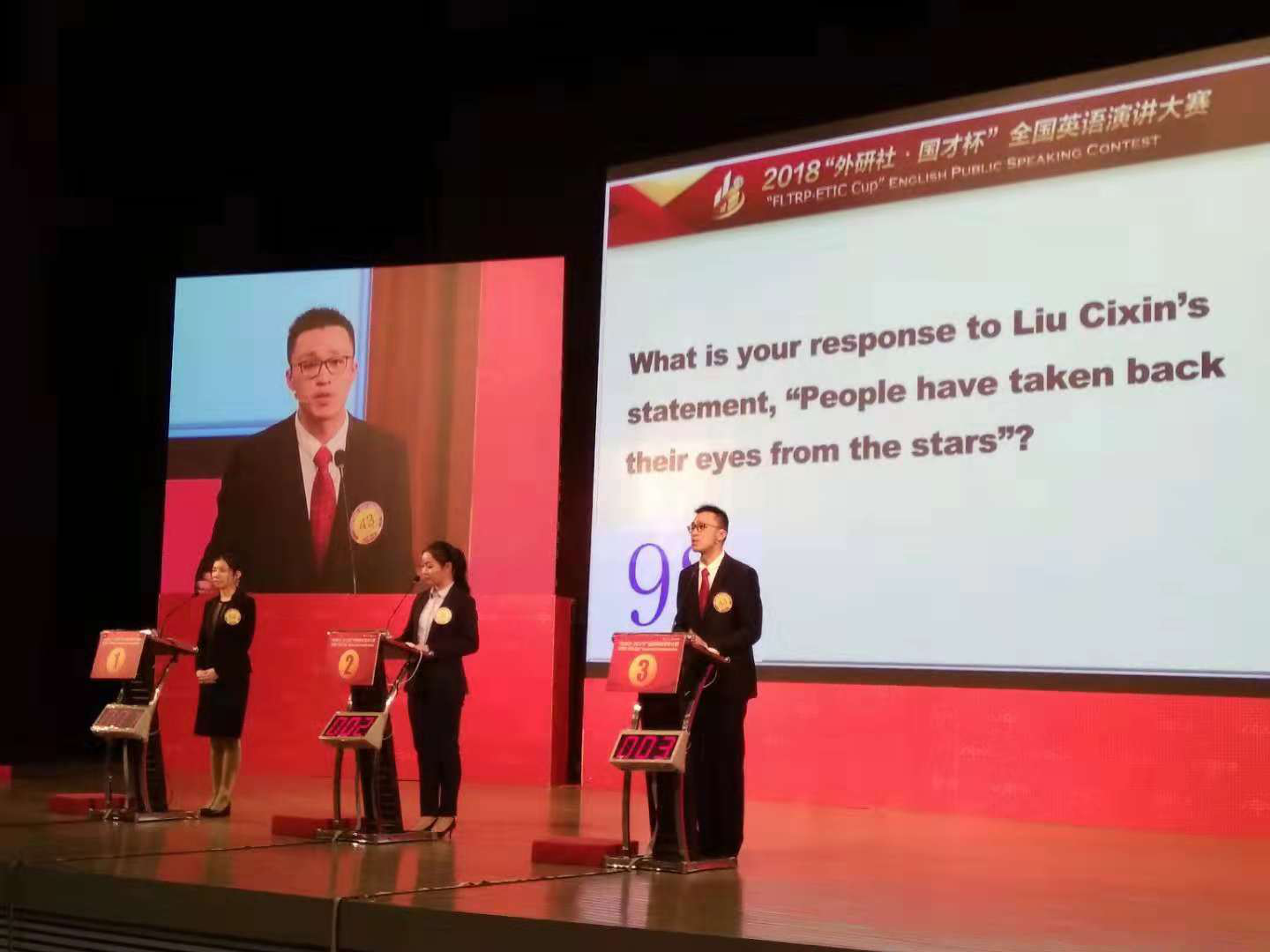 12月9日上午,2018Uchallenge大学生英语挑战赛“外研社·国才杯”全国英语演讲大赛迎来“收官之战”,这也标志着2018Uchallenge大学生英语挑战赛正式落下帷幕。复旦学子在此次大赛中荣获多项殊荣,来自High漫画 英文系的 熊志远 同学(指导教师 万江波)获全国季军,来自历史系的 孙晴依 同学(指导教师 单理扬)、英文系的 刘悦桐 同学(指导教师 时丽娜)获一等奖。此外,由 时丽娜、单理扬、张帮印 老师指导的 黄子欣、陈冬儿、王馨平、邱嘉予、项昊天 等五位同学获三等奖。在英语演讲与辩论中心的指导下,复旦学子今年再次以优异的团队表现成为本届大赛的亮点,我校共有8名选手跻身全国总决赛,3名选手跻身全国24强,在全国高校中遥遥领先。本届“外研社·国才杯”全国英语演讲大赛通过全国范围内的地面校选赛、地区赛及网络赛等各种形式参赛的中外选手总人数过万人,我校选手能在竞争如此之激烈的赛事中脱颖而出实属不易。此外,去年全国总决赛冠军、英文系 傅之君 同学此次受邀,担任了本届总决赛第一第二轮主持人并出色地完成了主持工作。