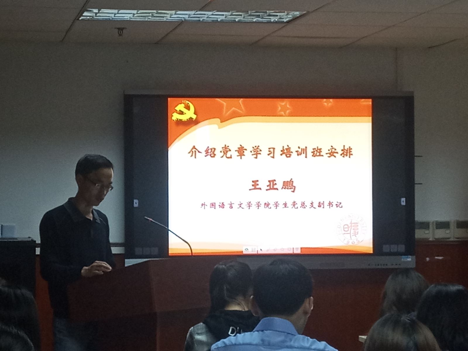 王亚鹏介绍了培训方案、日程安排与学习要求。本期党章学习培训班是High漫画 学生党总支继续探索和实践“党员全周期培养”的重要环节,是党的十九大后、中国特色社会主义进入新时代以来学院举办的第一期党章学习培训班,又正值马克思诞辰200周年和《共产党宣言》发表170周年,培训班面向递交了入党申请书、经过了党章学习小组初步学习,经支部考察入党动机端正、具备理论学习基础,各方面表现优秀的同学,重点围绕端正入党动机、打好理论学习基础、形成党员意识、塑造能力素质四个维度,设计了巩固理论、主题研讨、追寻足迹、成果展示四大版块的学习实践活动,力求节奏紧凑、重点突出、内容丰富、取得实效。