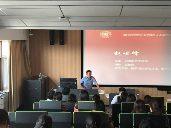 褚孝泉教授指出:新生要了解复旦和复旦人肩负的历史责任,向陆谷孙先生等老一辈大师学习,将思想独立、不随波逐流的复旦精神传承下去;要注重提高自身外语水平,要多看外语书,多读原文、原著、原典;要注重学术道德和版权观念,培养良好的学术规范。