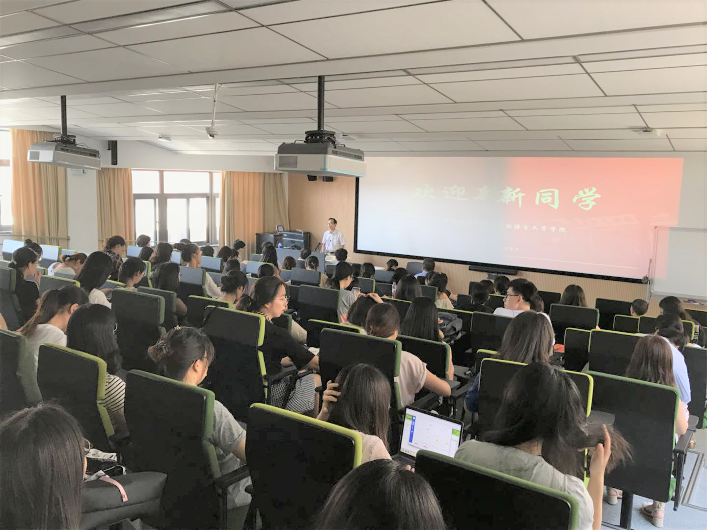 研究生教务员白冰老师向新生讲解了研究生培养过程中的各个环节及相应学籍、学位管理规定,并与学生互动,解答了同学们对于课程选择、出国交流等方面的问题。