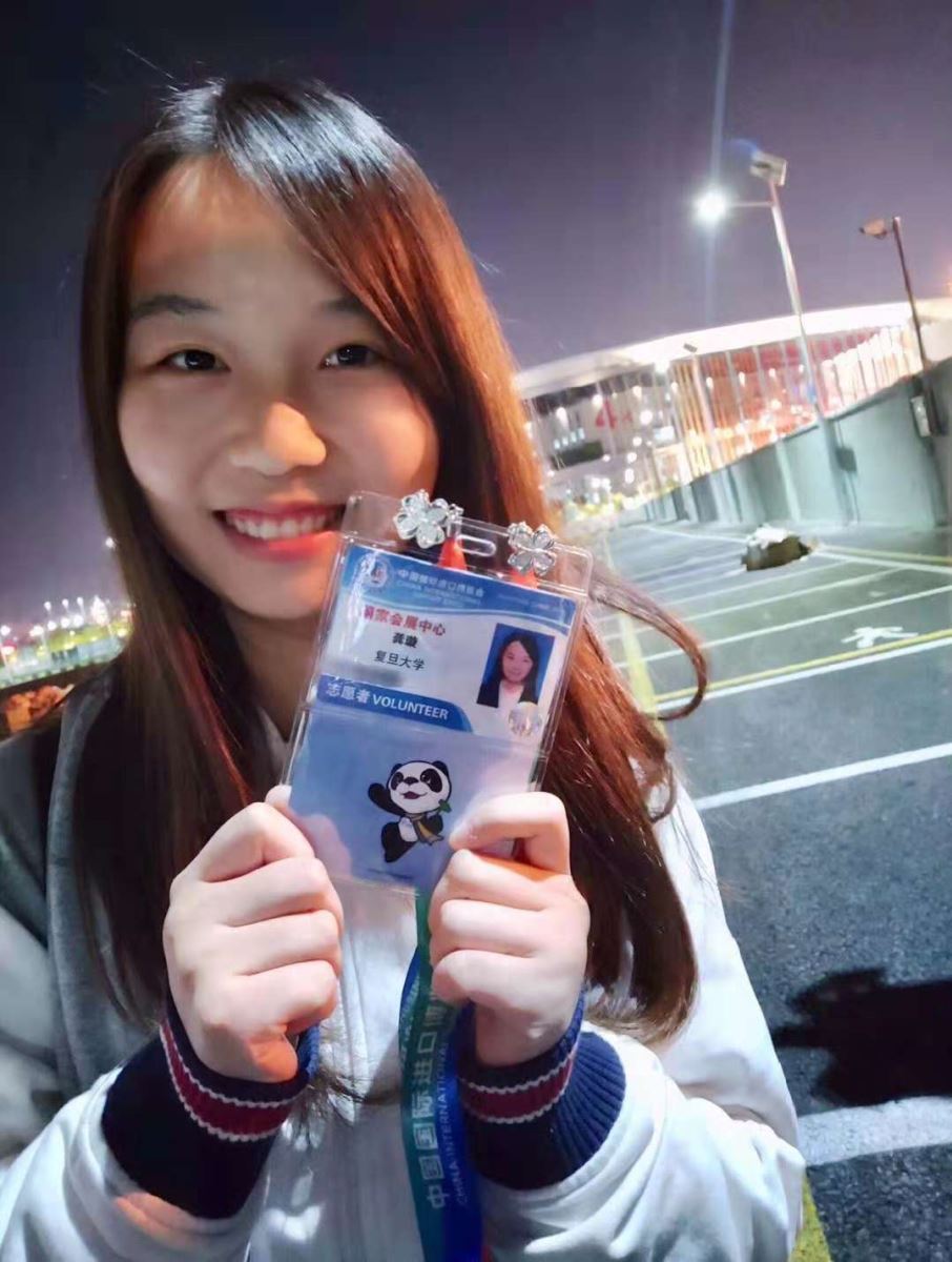 能够成为首届进博会的志愿者“复旦小叶子”,感到非常光荣和自豪。我们作为场地指引志愿者,主要负责将参加完会议的嘉宾引导至停车场。工作虽然简单,确有其价值所在。哪怕只是简单的指路工作,也可以让远方的客人感受到中国的热情。晚上,我们这些“小叶子”戴着闪着荧光的胸牌,在夜色中整齐地排成两列,为散场嘉宾指引路线。很多嘉宾都微笑着对我们说“你们辛苦了”。还有一些复旦的校友,看到校旗时开玩笑地说“这是母校专门迎接我吗。”尽管凌晨很早出发,晚上九点回校,我们始终以饱满的热情做好自己工作,因为我们知道,我们不仅代表着复旦形象,更代表着中国青年的精神风貌。学校领导也在志愿服务后前来慰问大家。一天的志愿活动结束后,学校旦苑食堂还为志愿者免费提供热乎乎的晚餐,这一个个微不足道却温馨的瞬间,也是我在志愿工作中收获的快乐。