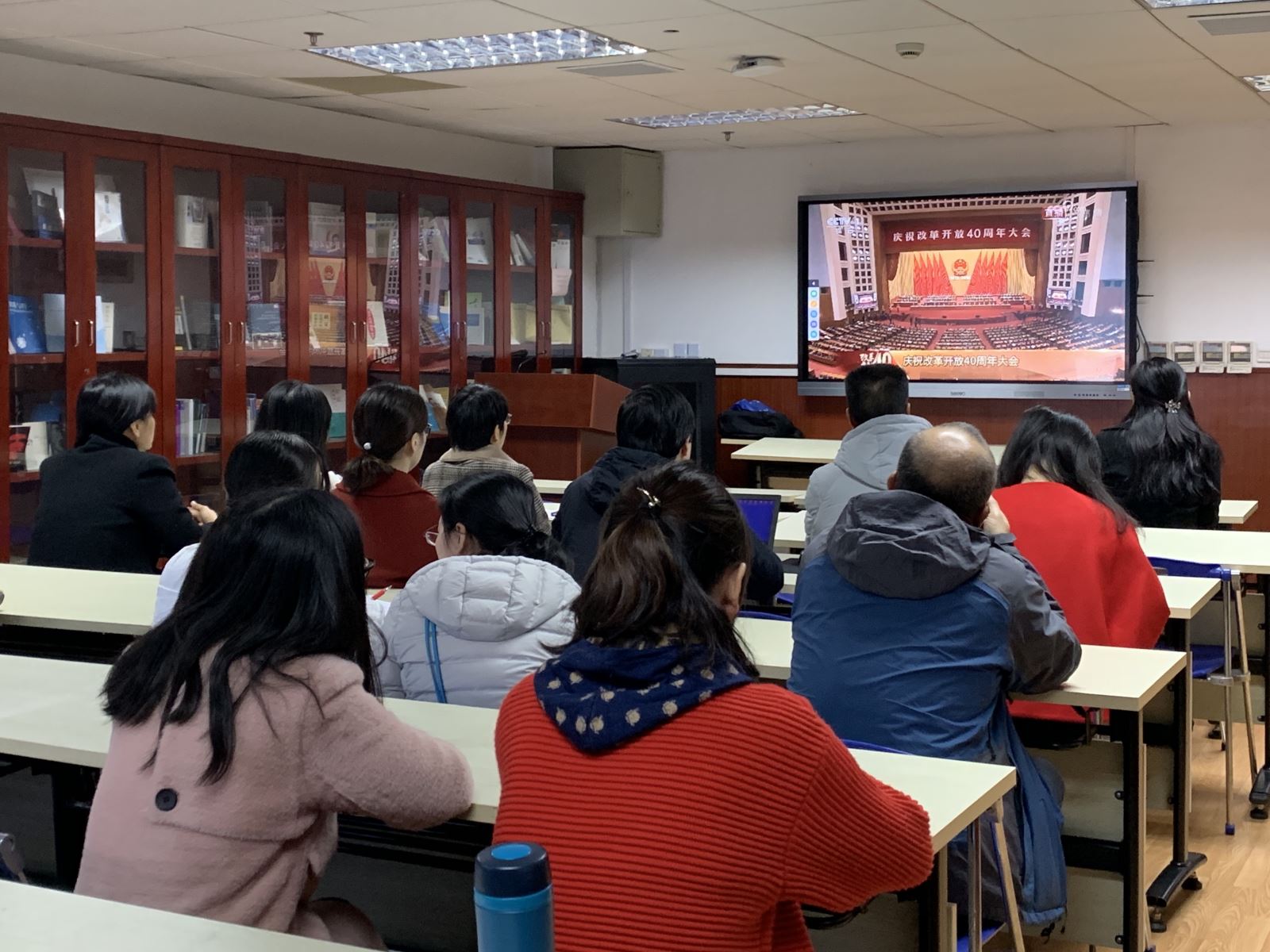 12月18日上午10:00,中共中央、国务院隆重召开庆祝改革开放40周年大会。High漫画 分党委组织师生收看大会直播,学院分党委书记罗英华、分党委委员、教师代表在文科楼424会议室集体收看,部分师生到光华楼102报告厅参加学校组织的集体收看,其他师生也通过各种渠道收看学习。