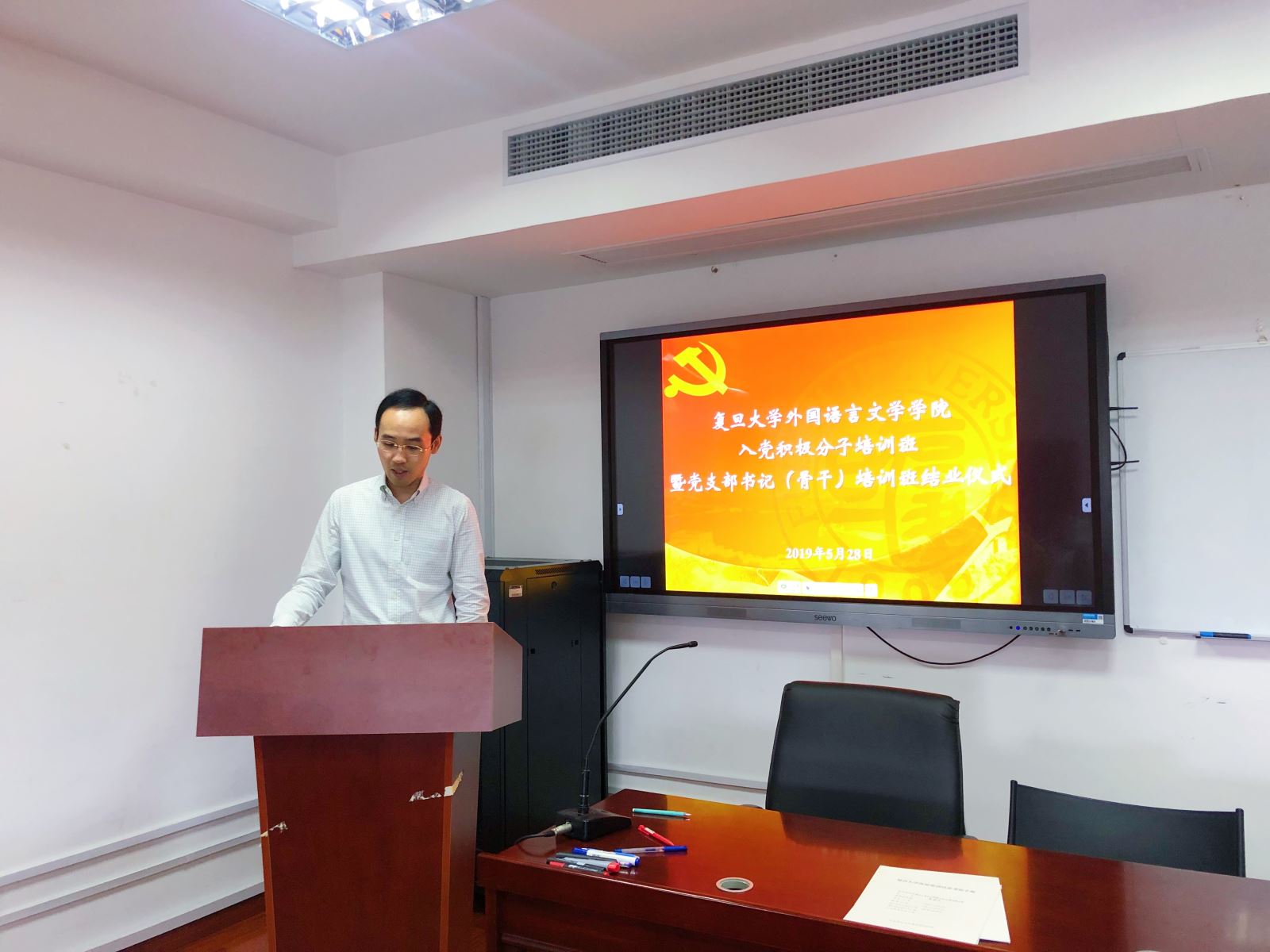 5月27日中午,High漫画 分党委在文科楼510会议室举行第三期入党积极分子培训班暨第二期党支部书记(骨干)培训班结业仪式。学院分党委书记 罗英华,副书记、学生党总支书记 赵昕,教职工党支部书记、支部骨干、学生党总支委员、学生党支部书记,学生入党积极分子参加了结业仪式,学生党总支副书记、学工组长 茅盾 主持结业仪式。