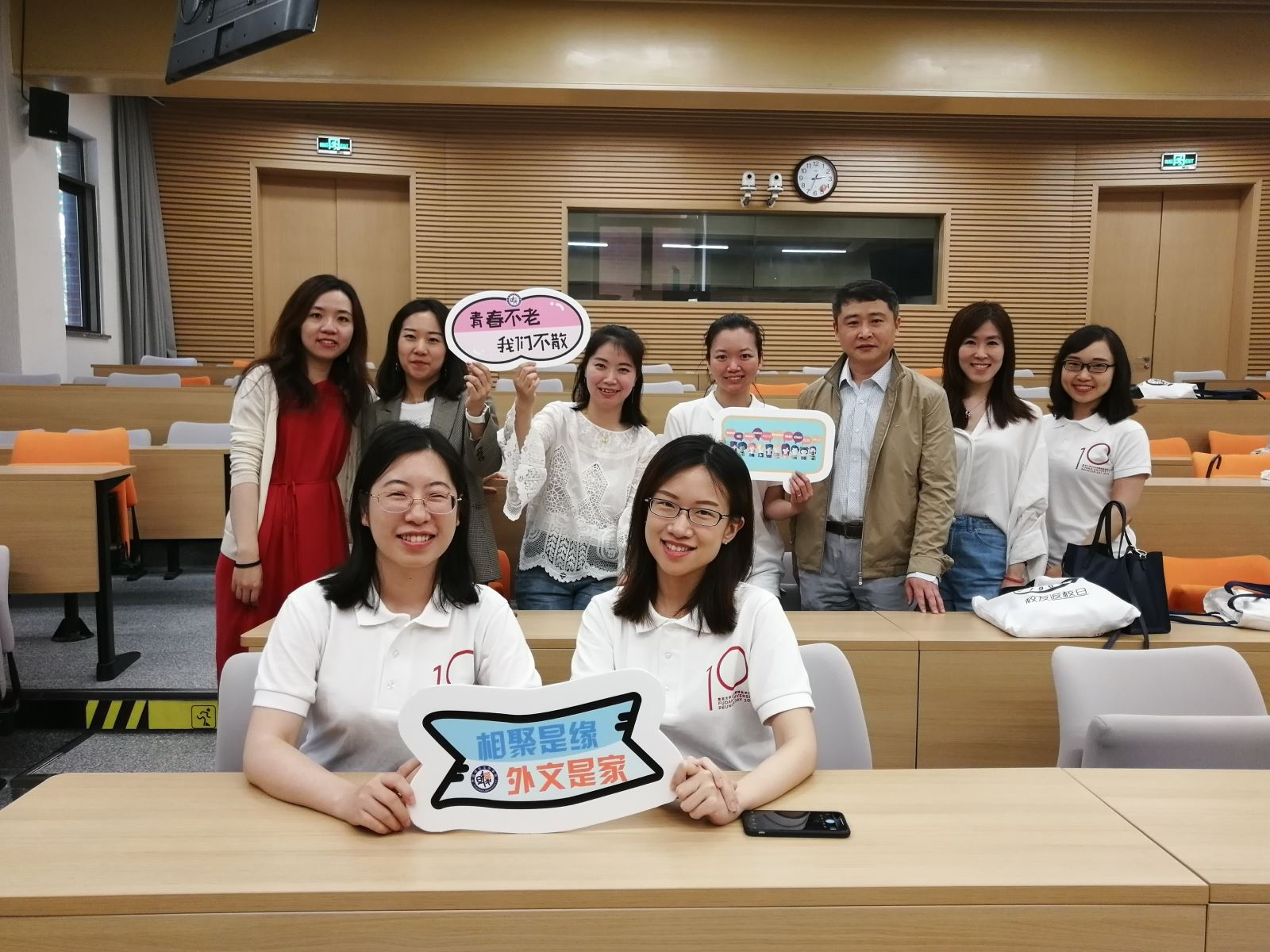 副院长高永伟与韩文系教师郭一诚出席聚会,与校友们亲切交谈、了解大家的现状,并代表学院欢迎大家回来。校友们对两位师长的到来表示惊喜,大家时隔多年再次共聚一堂,重温师生情与同学情。