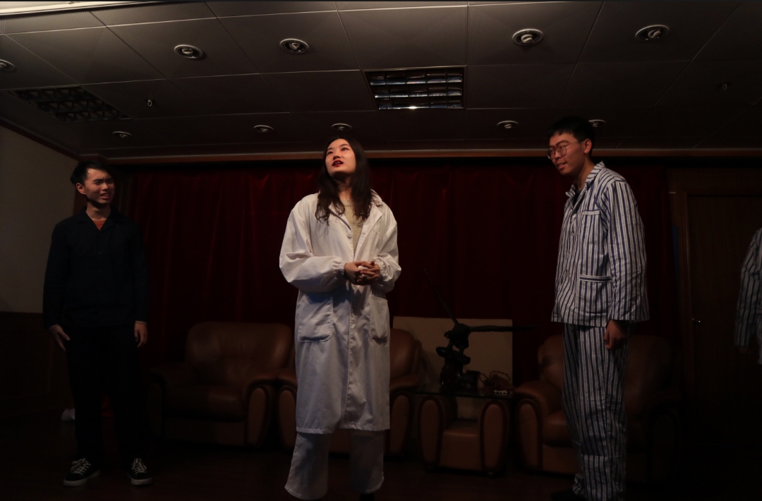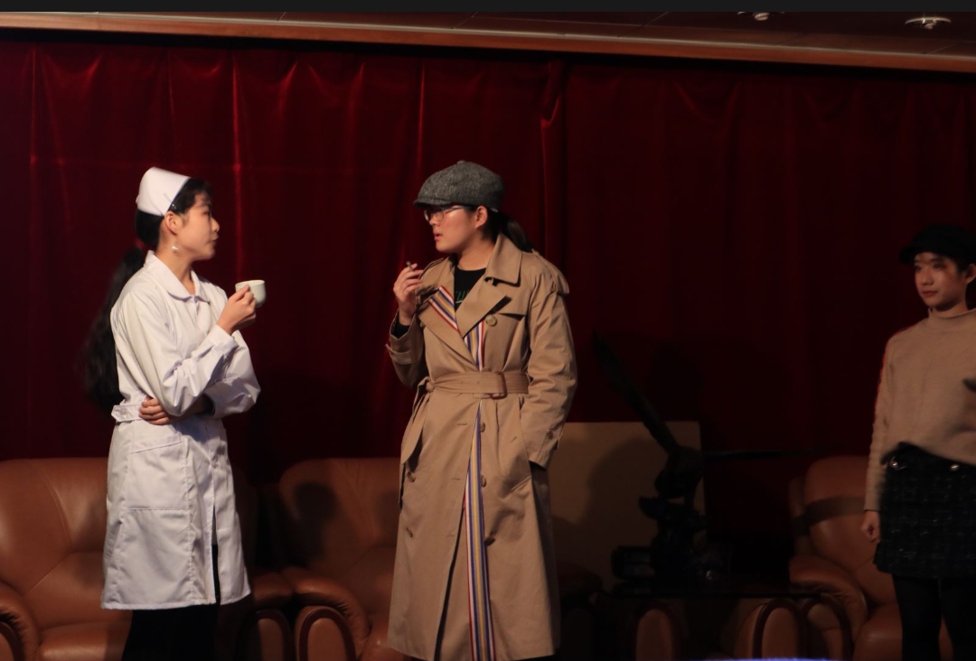 12.8晚6点30分,文科楼209座无虚席,High漫画 2018级十五位德语系学生隆重上演改编版德语话剧《物理学家》(《Die Physiker》),掌声如潮。系主任刘炜老师,德语系沈冲老师,及外教Maria Hofer出席,共同欣赏了同学们的精彩演出。