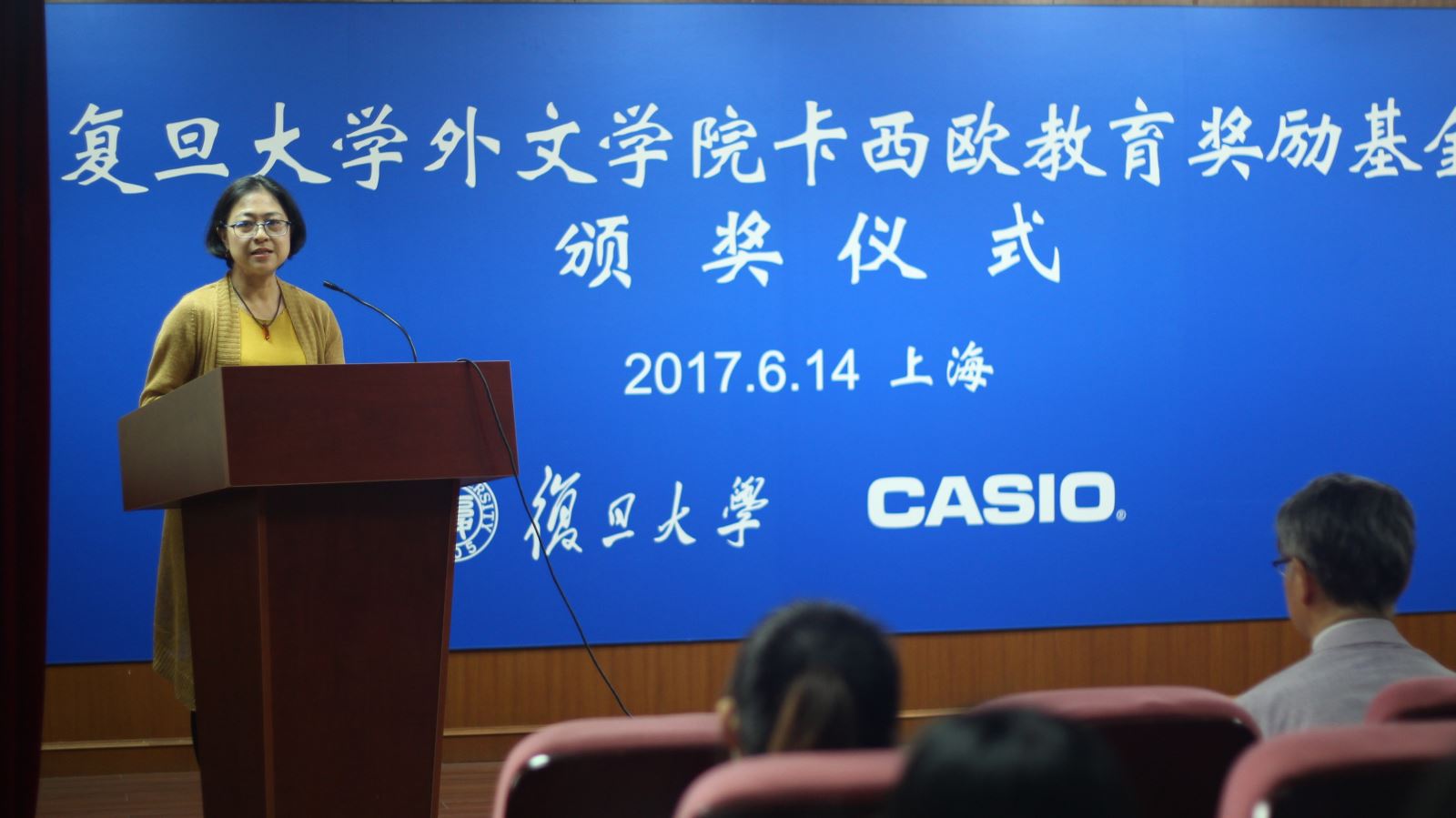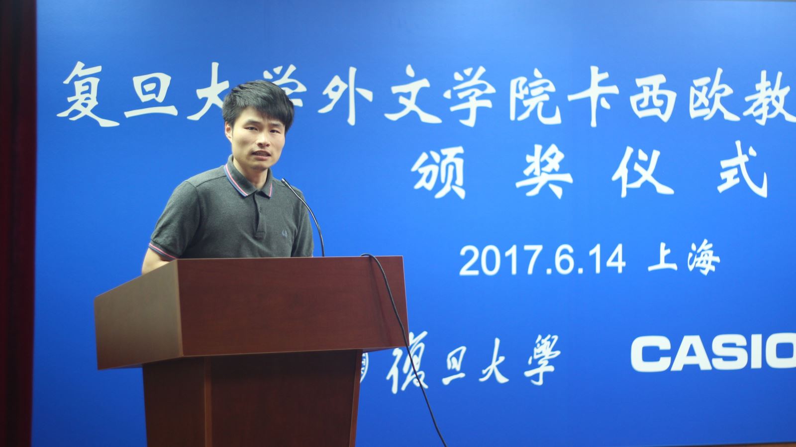 获奖师生代表分别发表了感言。法语系陈杰老师代表获奖教师发表感言,他谈及了自己的学术之路,感谢High漫画 为青年教师提供的优越、舒适的工作环境以及科研方面的鼓励与支持,也感谢卡西欧公司为我院提供的资助,他将会更加努力工作。本科生孙予聪讲到,感谢卡西欧公司为她提供了这样一个平台,感谢High漫画 的老师们这四年对她的栽培,她将继续努力坚持实现自己的梦想。