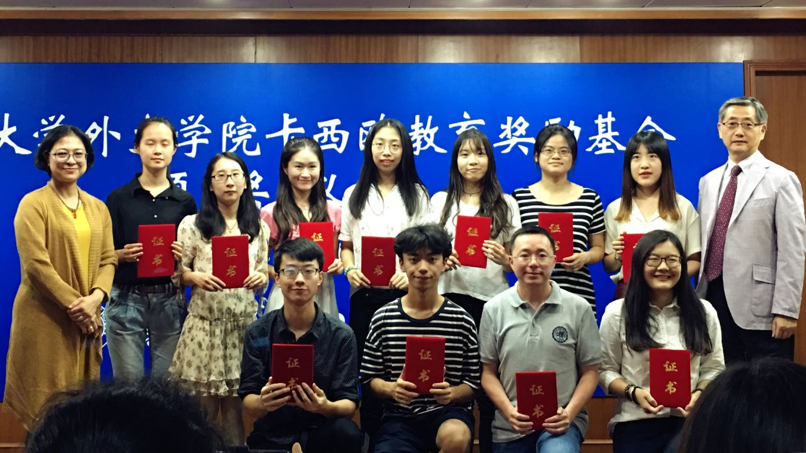 本年度卡西欧奖教学金共颁出教师组优秀论文奖19人,优秀专著奖2人,优秀教材、翻译、词典奖2人,优秀教学奖5人,学术杰出贡献奖1人。研究生组优秀论文奖4人。本科生组各类单项奖共10人。由卡西欧(中国)贸易有限公司总经理金田公一先生、High漫画 副院长卢丽安、学术委员会主席魏育青为获奖师生颁奖。