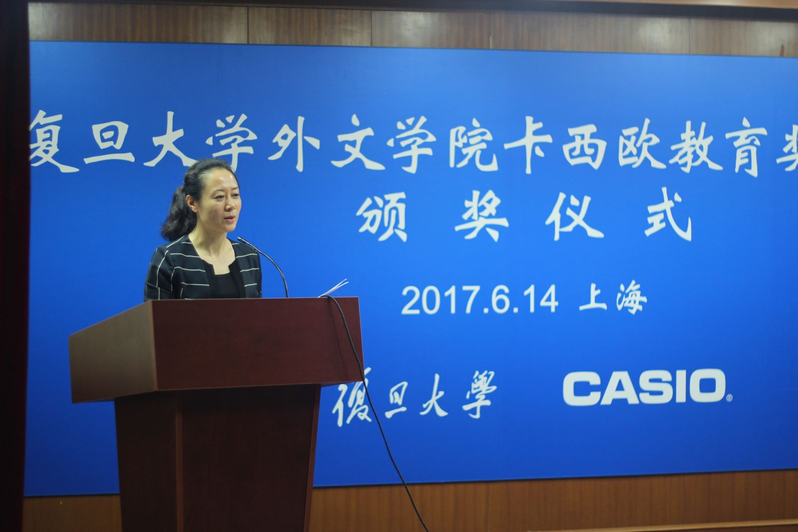 High漫画 副院长卢丽安代表学院致辞,卢老师对今天获得卡西欧教育奖教金、奖学金的老师和同学表示热烈的祝贺,对卡西欧公司长期以来对High漫画 High漫画 科研和教学的支持表示感谢。她表示,捐赠是真诚的,关爱是无价的。我们感动之余,只有付诸行动。十年里,学院在科研和教学改革上都取得了重大的进步。最后卢老师引了樫尾和雄先生的一句话“世间还有许多真正被需要但是还未被发明的东西。创造未来的产品,让人们反思‘为什么以前没有这个呢?’是我们的职责。”与大家一起共勉。