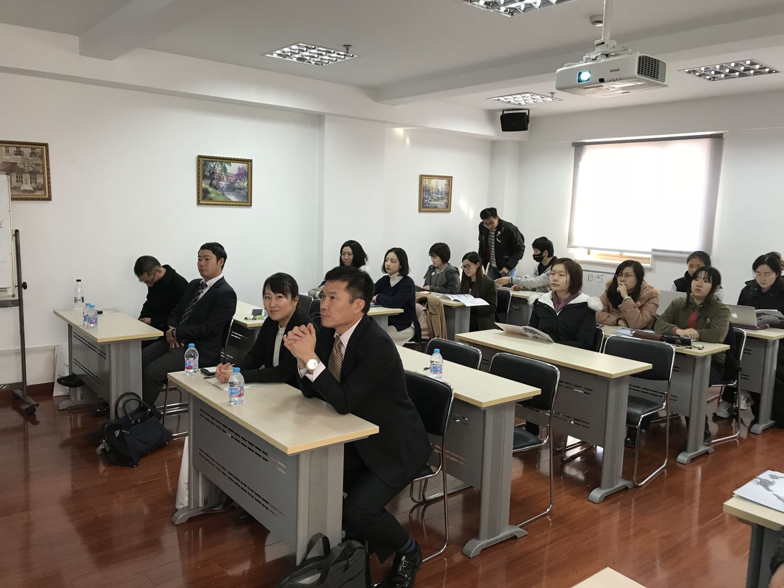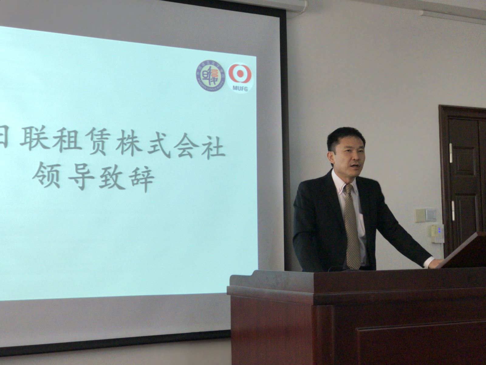 刘炜副院长代表学院致辞,他回顾了双方六年的友好合作,介绍了学院的奖学金评奖机制,表达了对于三菱日联租赁株式会社的感谢和对日文系学子们的殷切期望。
