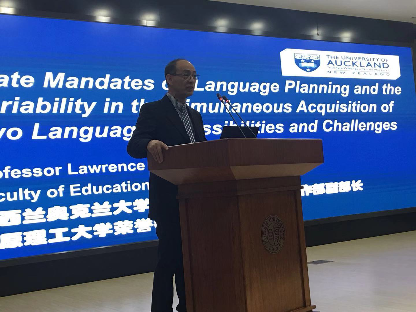 全天六场主旨演讲精彩纷呈。上午第一场主旨演讲由西班牙巴斯克大学的Durk Gorter教授带来,他就如何转变多语课堂中的教师信念从理论和实践两个方面展开讨论。第二场主旨演讲是哈佛大学的Paola Uccelli教授,她系统介绍了她带领的哈佛教育学院研究团队所做的关于青少年核心学术语言能力的系列研究结果,并且讨论了核心学术语言能力在跨语言学习中如何转化。第三场主旨演讲由芬兰赫尔辛基大学的Fred Dervin教授、上海财经大学外语学院的赵珂教授共同主讲。赵珂教授首先介绍了上海财经大学-赫尔辛基大学的跨文化研究中心开展的工作,Fred Dervin教授则从芬兰的多语教育出发,梳理了欧盟多语政策的历史嬗变,指出政策话语与实践之间的差异以及对中国高等教育的启示。