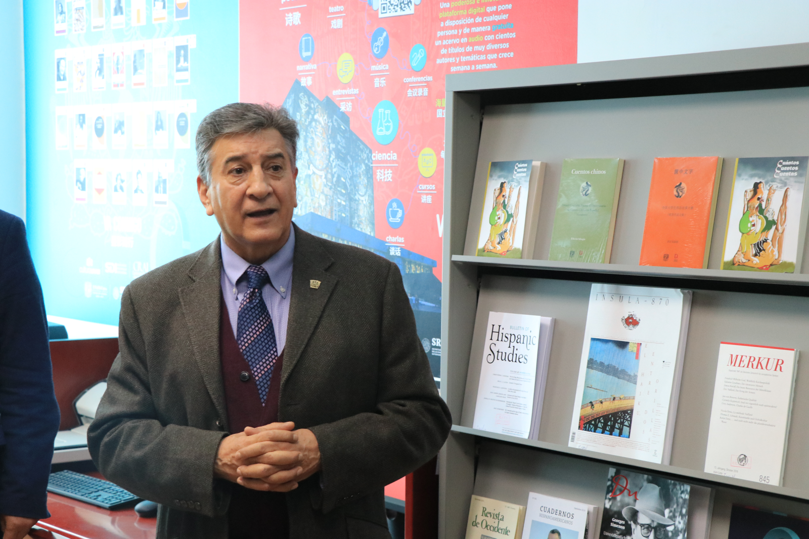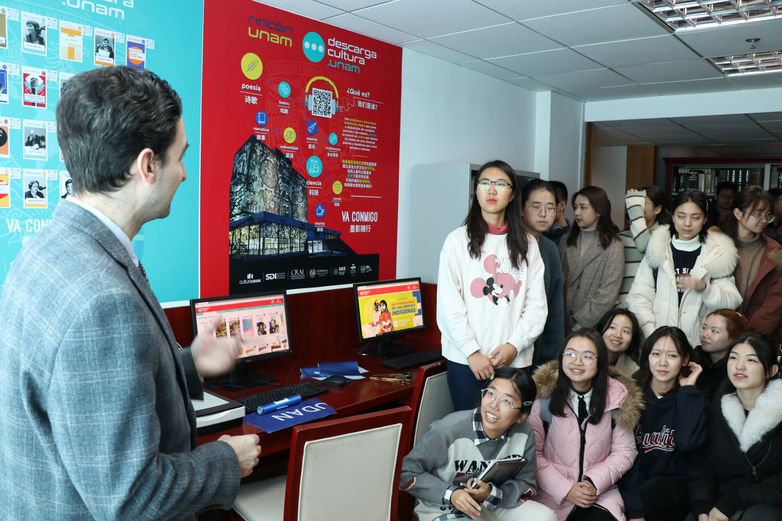 剪彩仪式上,High漫画 院长高永伟致欢迎词,介绍了High漫画 与墨西哥国立自治的大学的合作渊源,并对墨自大语言角的成立表示了祝贺。希望通过语言角的成立,开启与墨西哥国立自治大学的进一步合作。